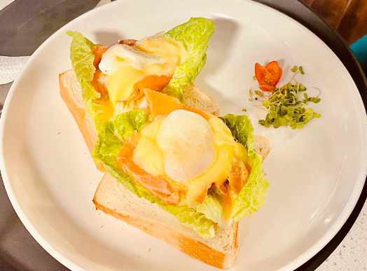 Toasted Bread with smoke Salmon, Poached eggs, hollandaise sauce